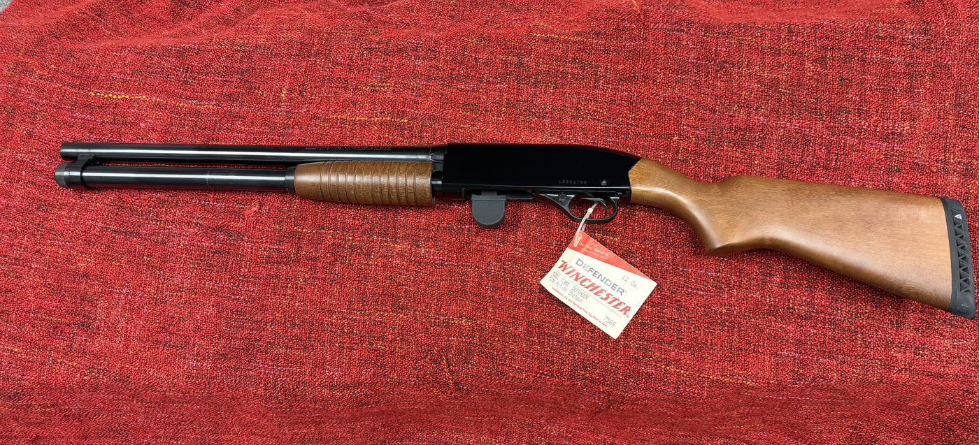 The Winchester 1300 Defender is a 12-gauge, pump-action shotgun renowned for its fast, smooth action and reliability, manufactured from 1984 to 2006. Designed for defense, it typically features an 18.5-inch barrel and a 7-round magazine (7+1 capacity), often paired with wood or synthetic furniture. Known as a "Speed Pump," its rotary bolt design automatically unlocks upon firing, enabling quick follow-up shots.